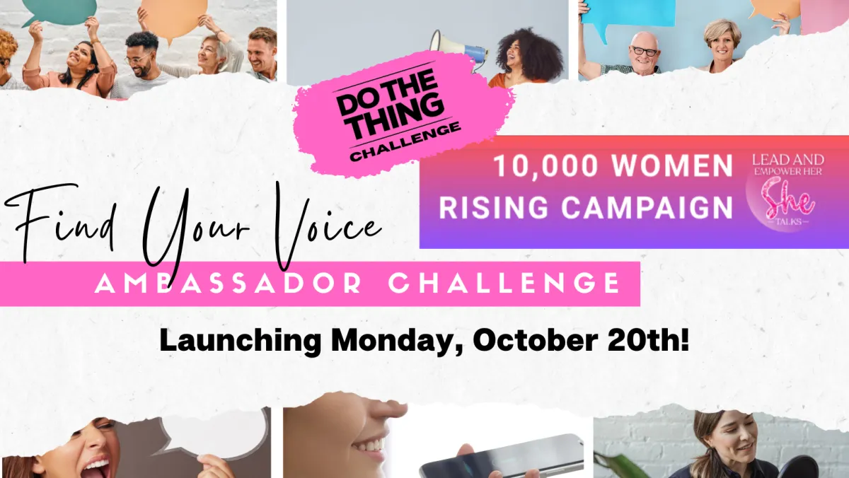 The Find Your Voice Challenge is the heartbeat of the 10,000 Women Rising movement. It’s where women begin their journey of transformation—learning to speak up, stand tall, and lead with authenticity. As an Ambassador, this is your opportunity to experience that transformation first, so you can confidently guide others through it.